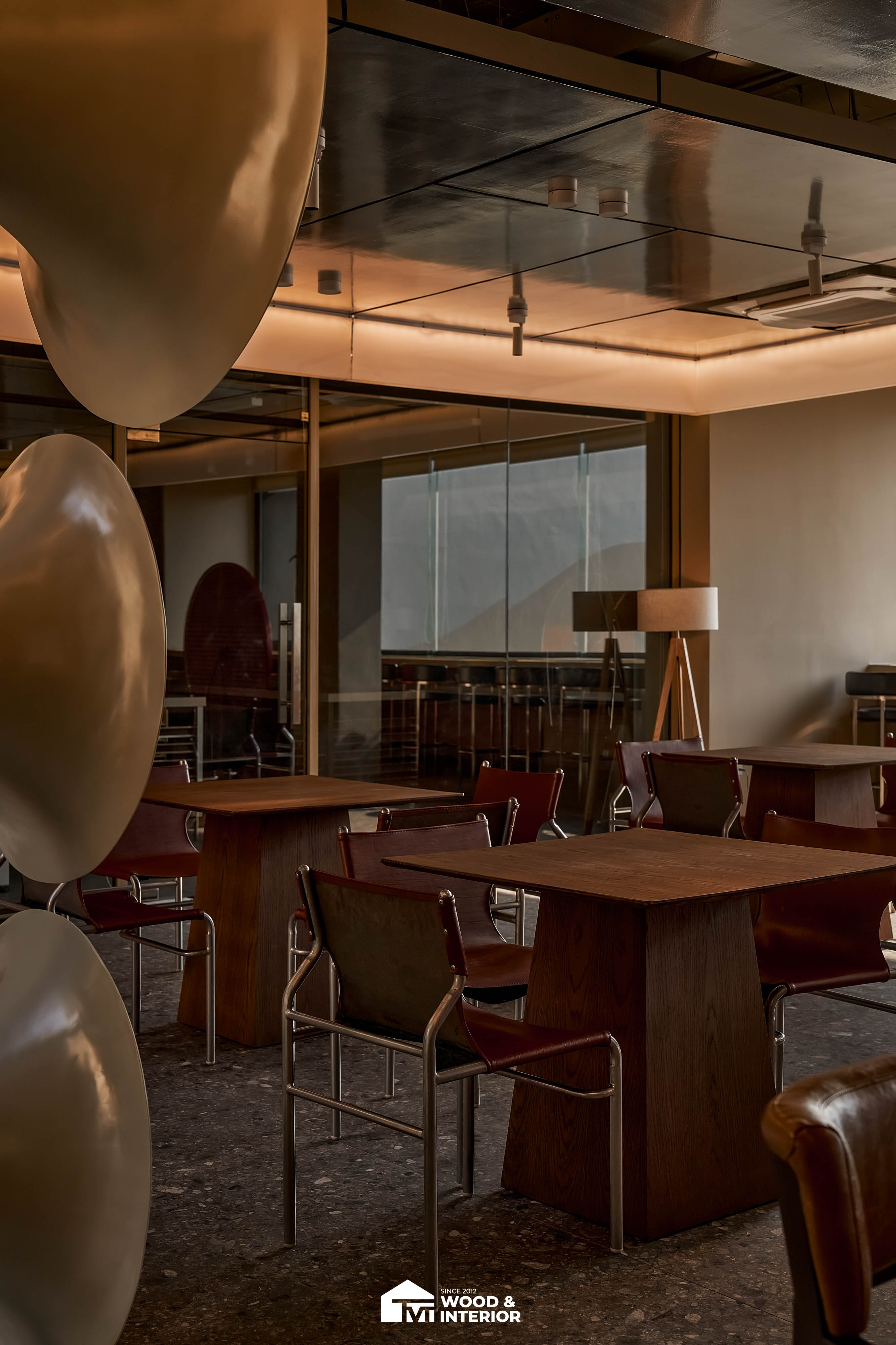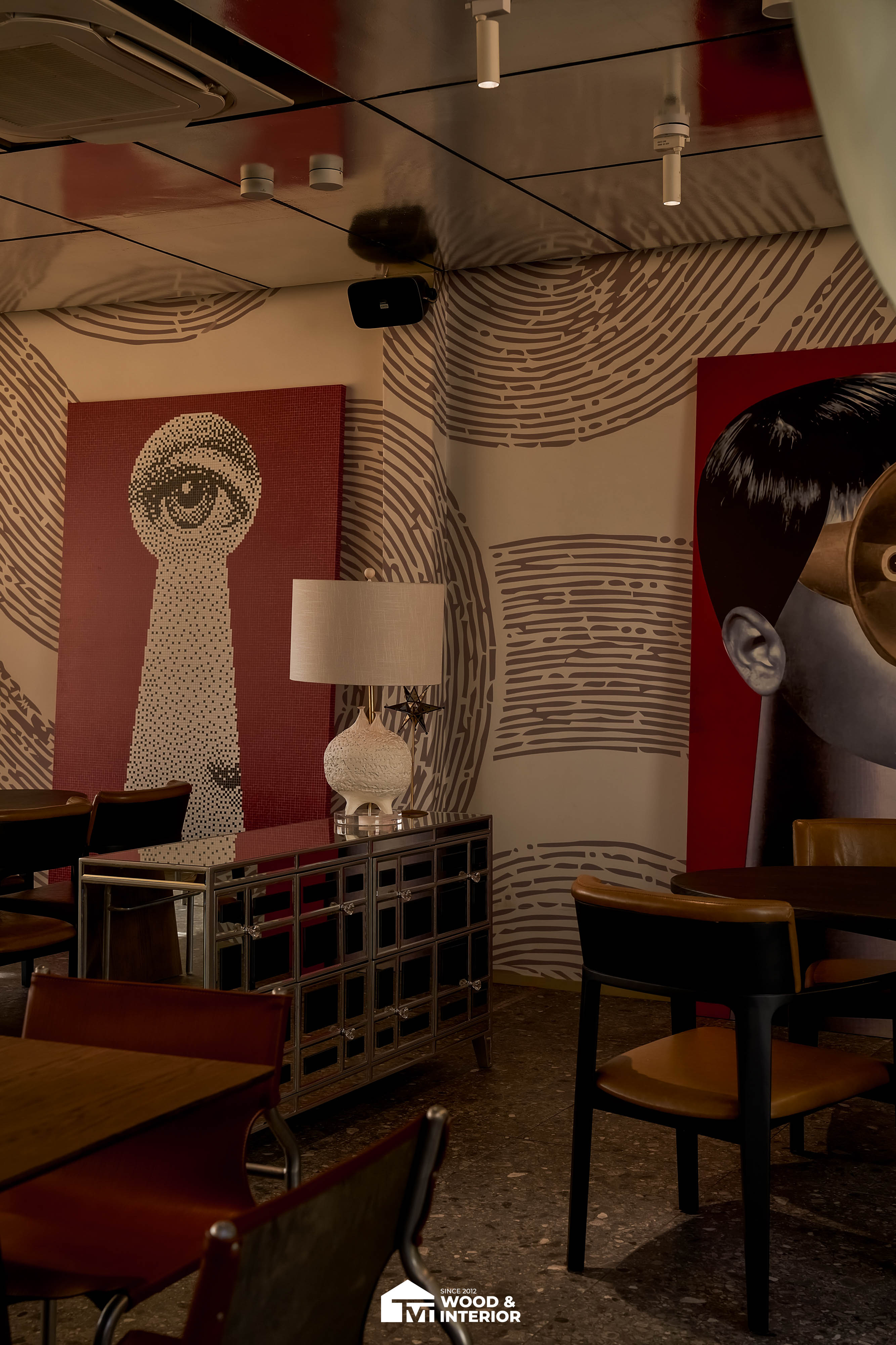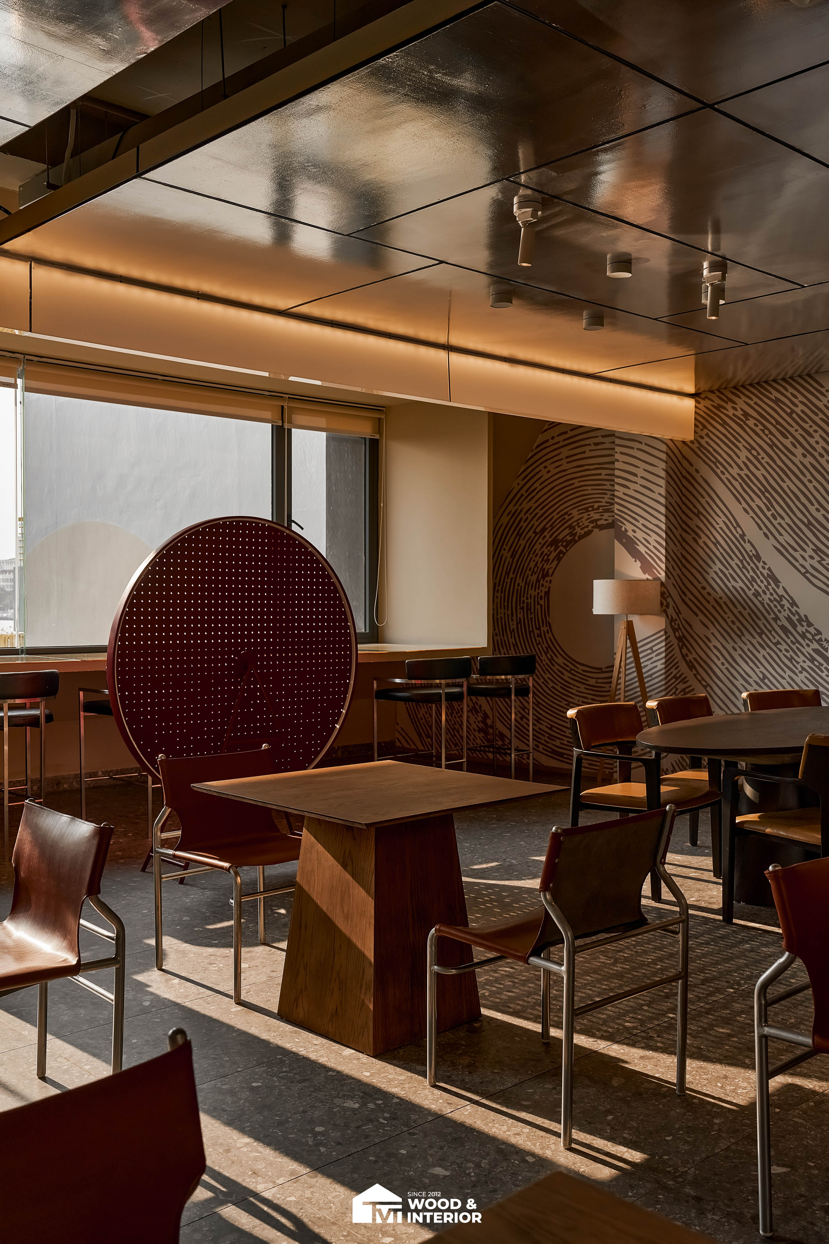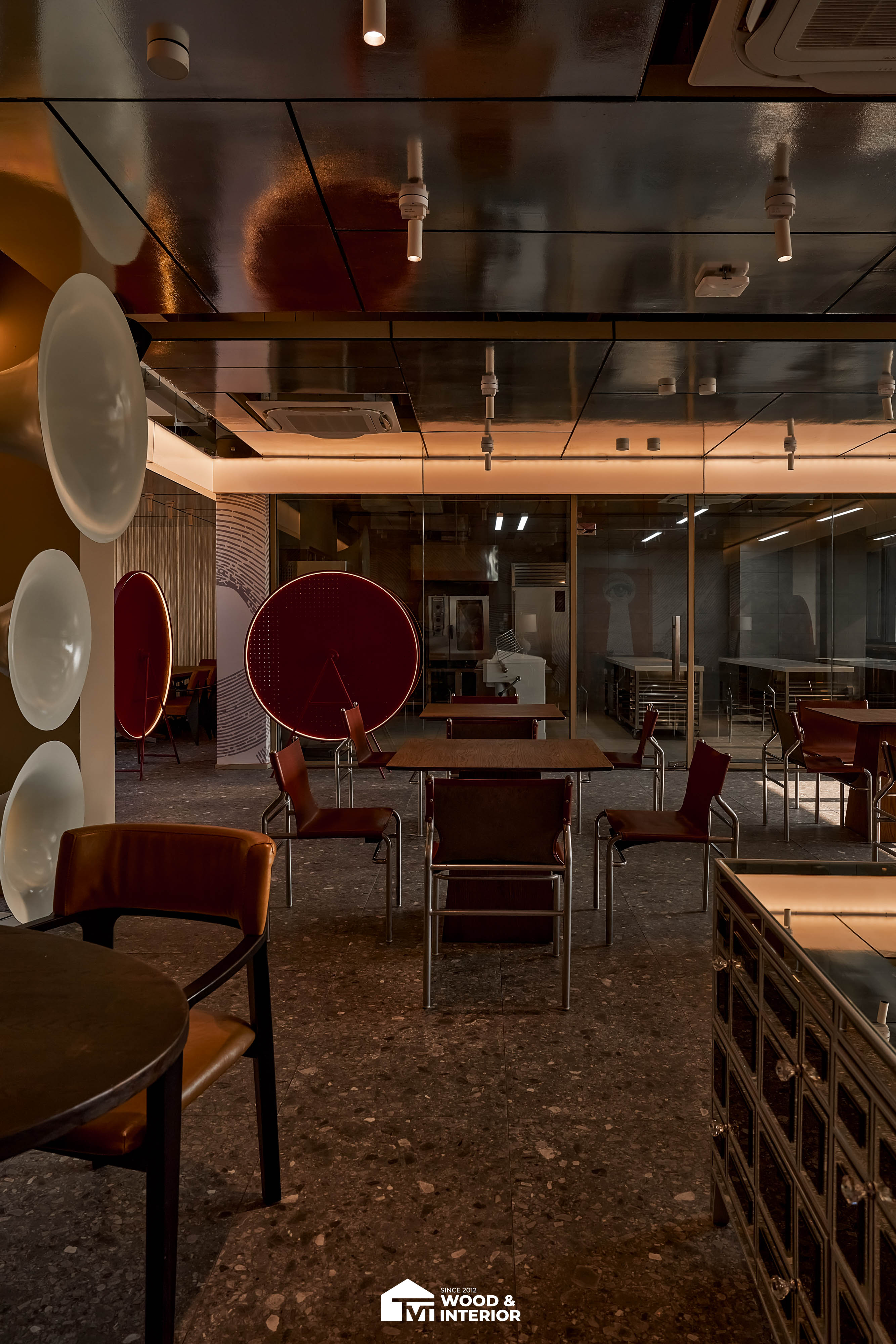 Điểm nhấn của dự án nằm ở các hạng mục nội thất trang trí đòi hỏi độ hoàn thiện sắc sảo. TVT trực tiếp sản xuất và lắp đặt hệ thống bàn ghế với đa dạng chất liệu, kiểu dáng độc đáo, đảm bảo sự kết nối hoàn hảo giữa công năng sử dụng và thẩm mỹ thị giác. Đặc biệt, phần trần inox gương và các mảng tường đồ họa Pop-Art được xử lý tỉ mỉ, tạo nên một tổng thể không gian phản chiếu ấn tượng hướng ra phía sông Hàn.