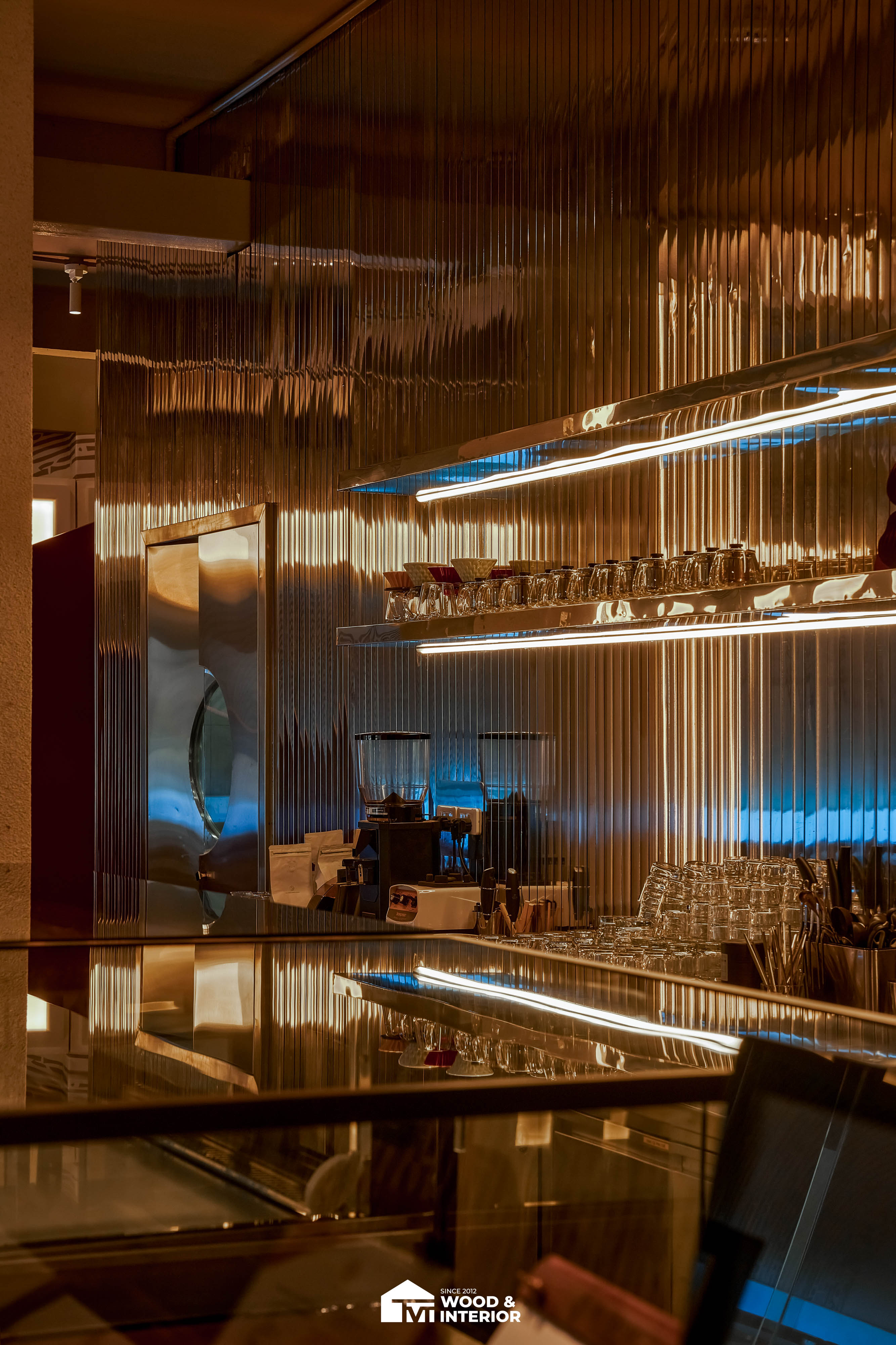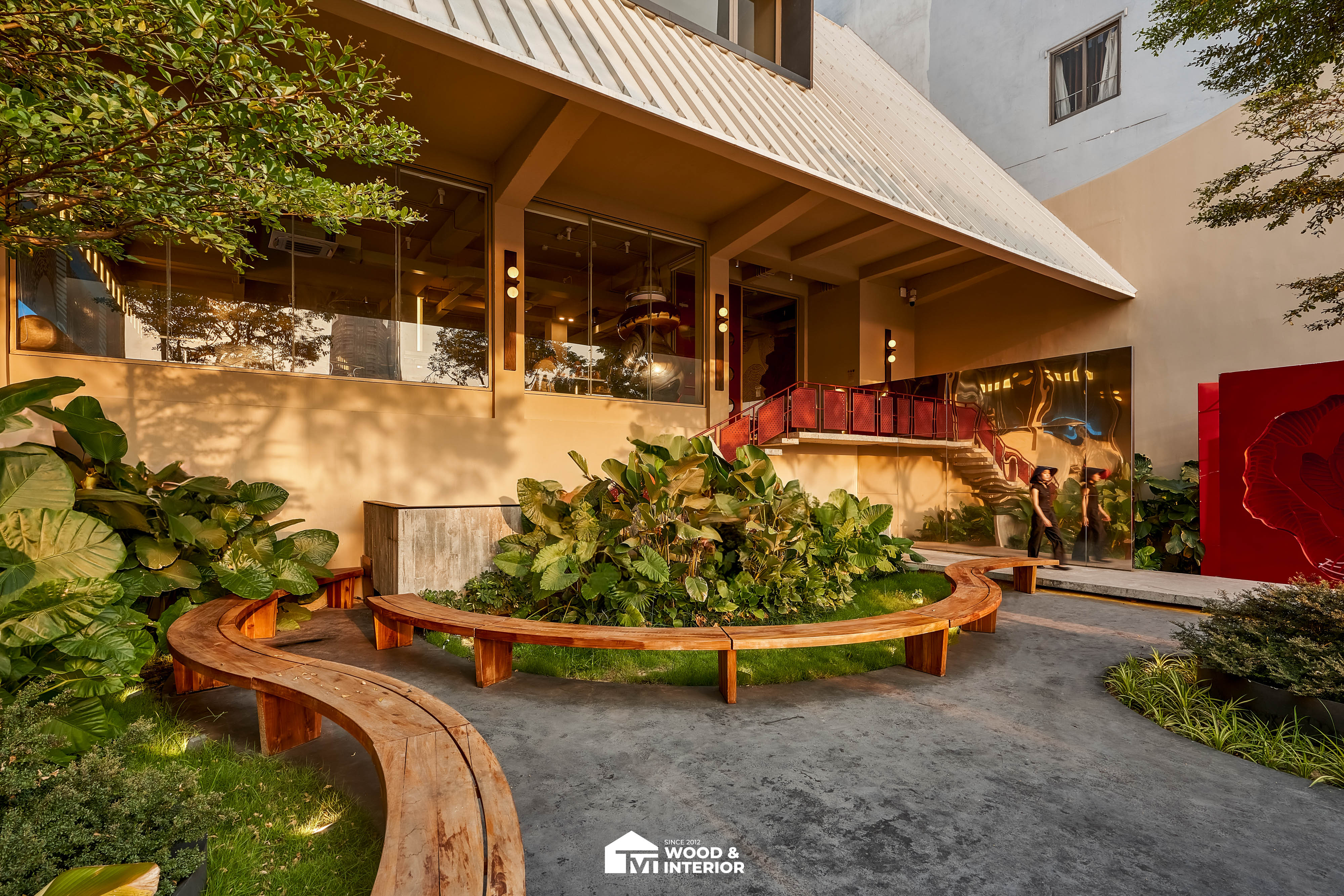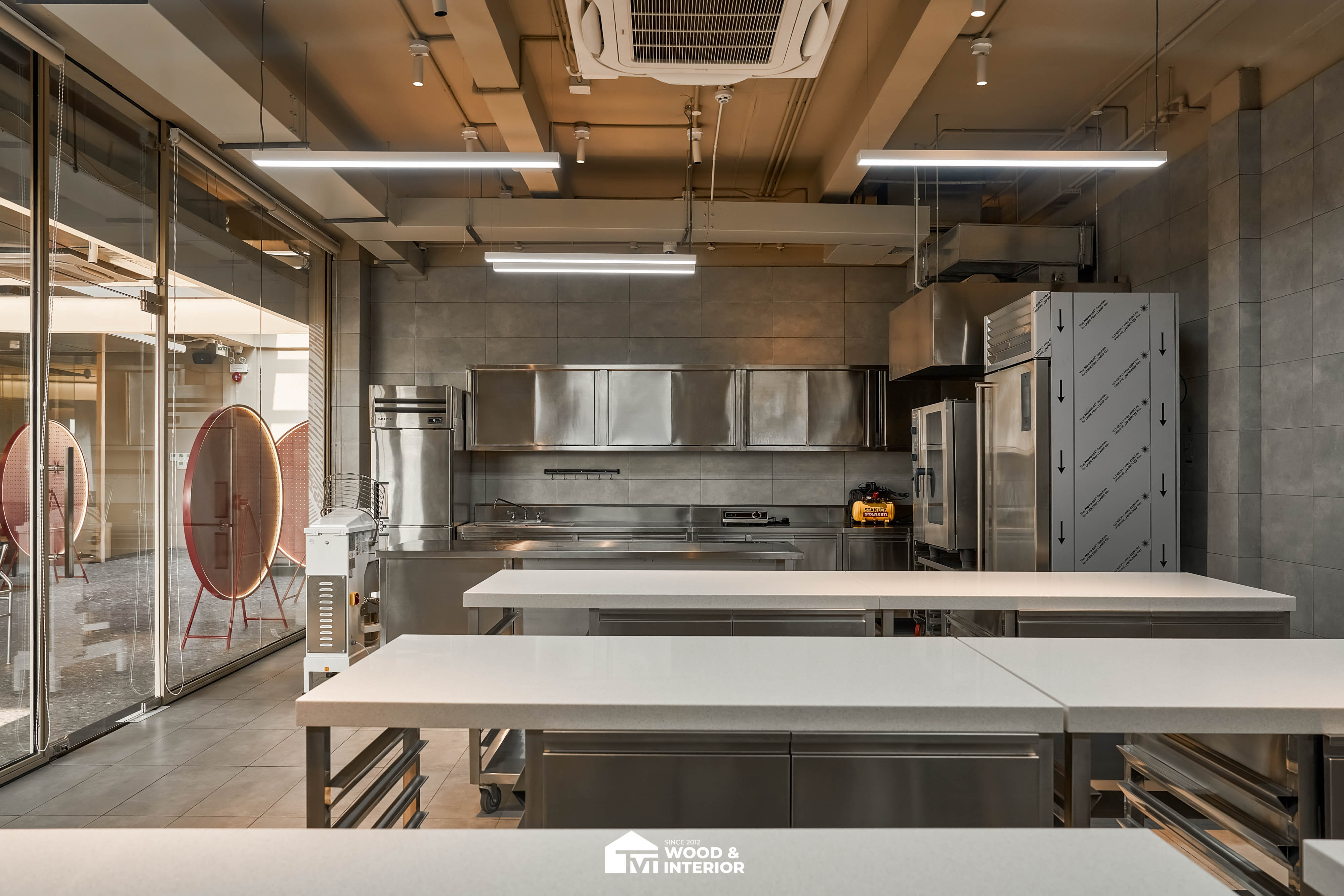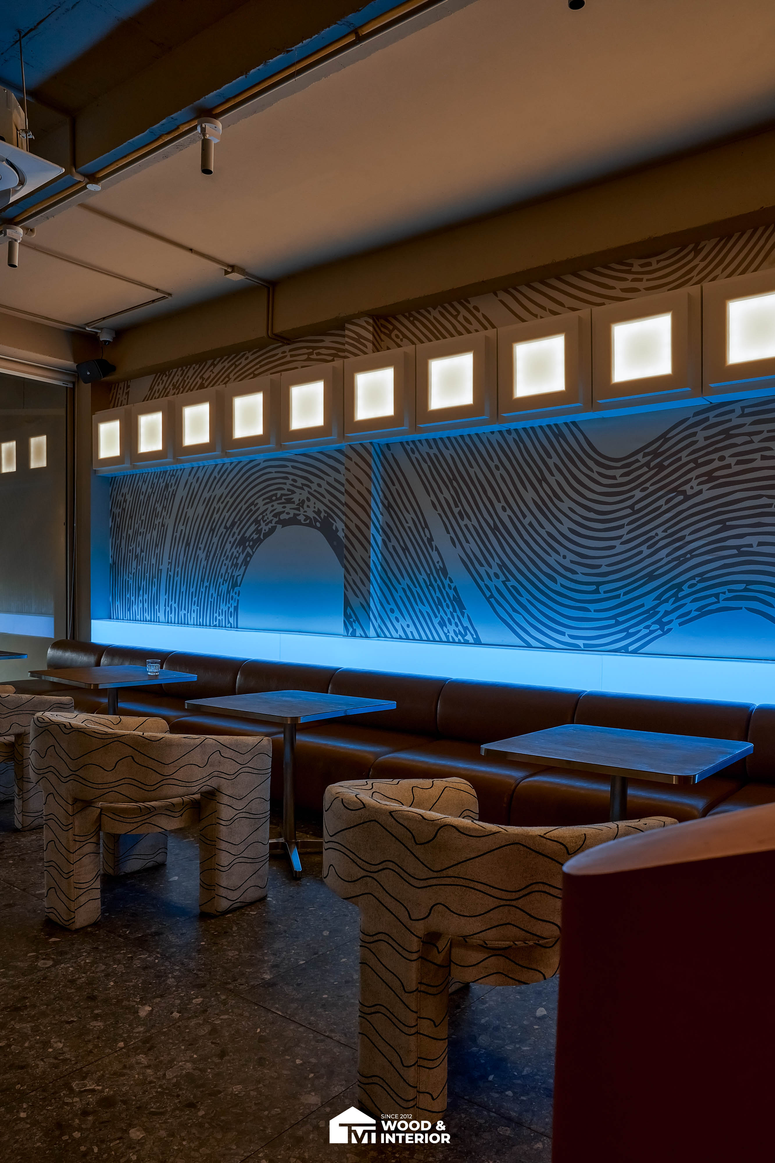 Điểm nhấn của dự án nằm ở các hạng mục nội thất trang trí đòi hỏi độ hoàn thiện sắc sảo. TVT trực tiếp sản xuất và lắp đặt hệ thống bàn ghế với đa dạng chất liệu, kiểu dáng độc đáo, đảm bảo sự kết nối hoàn hảo giữa công năng sử dụng và thẩm mỹ thị giác. Đặc biệt, phần trần inox gương và các mảng tường đồ họa Pop-Art được xử lý tỉ mỉ, tạo nên một tổng thể không gian phản chiếu ấn tượng hướng ra phía sông Hàn.